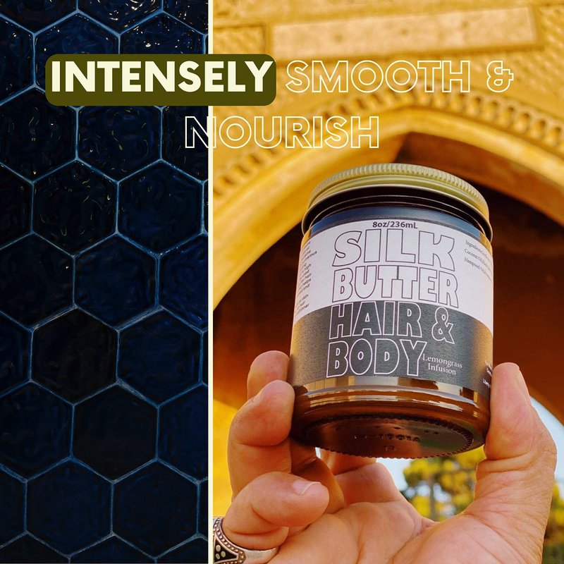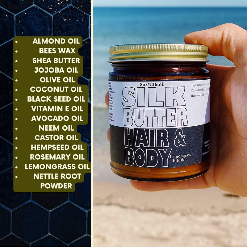Silk Butter for Hair and Body-Lemon Grass Black Seed Oil Blend - Hydrating repair cream- for dry, damaged skin and hair- with Jojoba oil, Shea Butter - Paraben Free, No Synthetic Fragrances - 8 oz