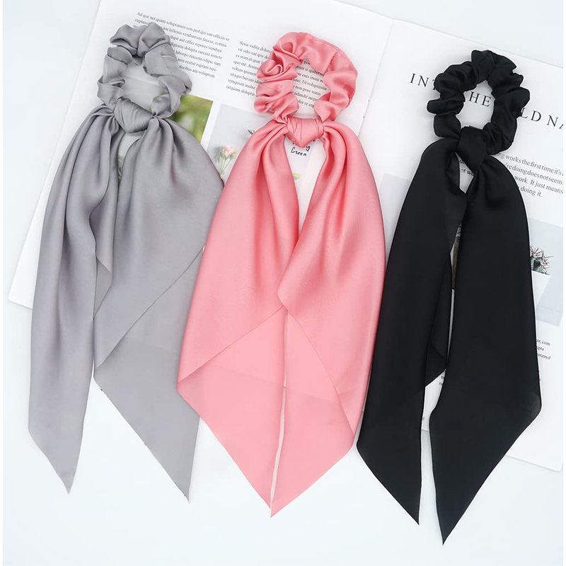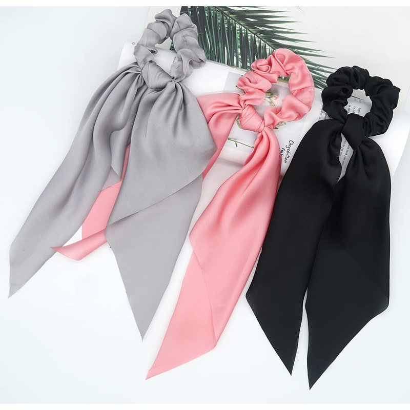 Silk Hair Scarf Scrunchie Hair Ties Satin Long Hair Ribbon Solid Color Elegant Bow Bowknot Hair Scrunchie Pony Tail Holder Hair Bands for Women Girls (3 pcs)