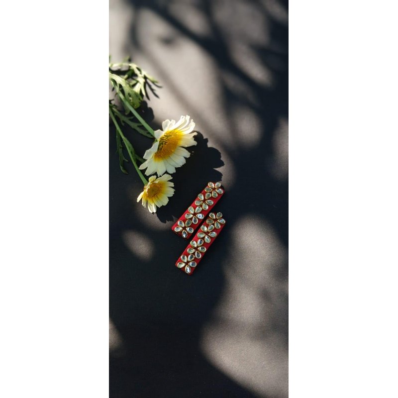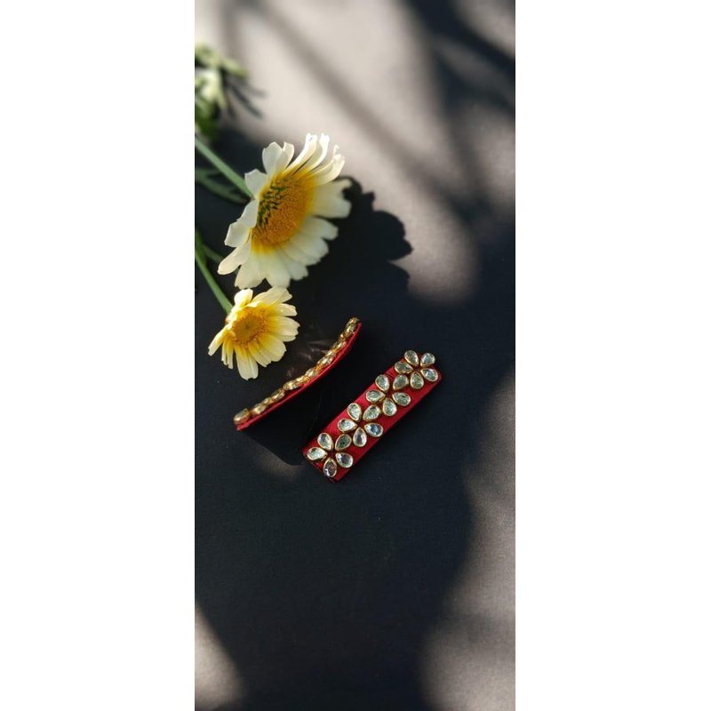 Silk thread Kundan Hair Pins/TicTac For Women And Girls (Red)