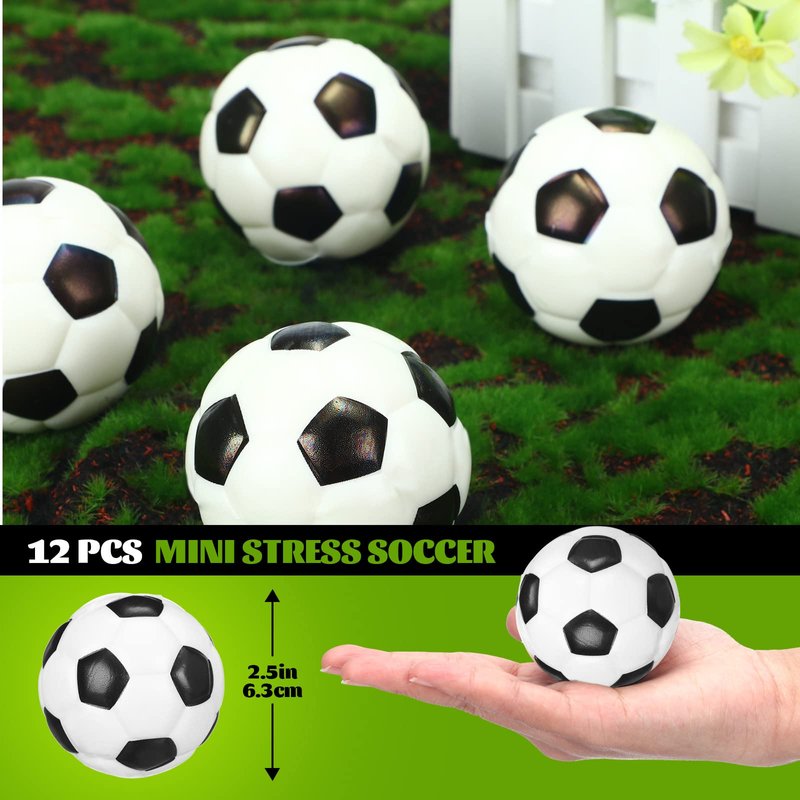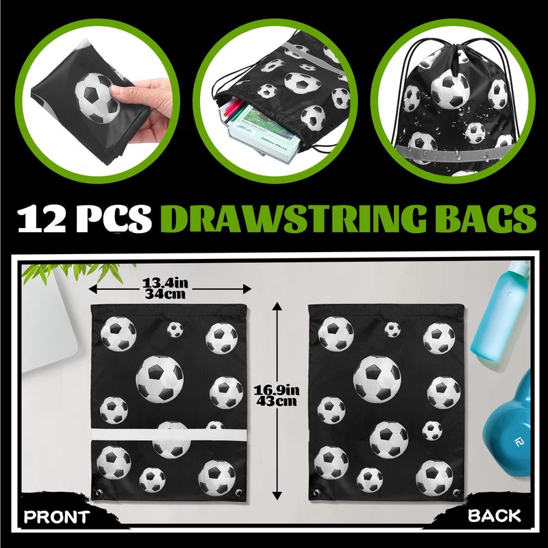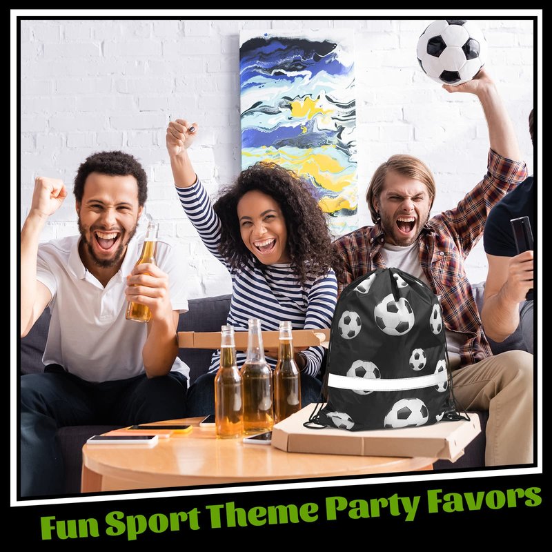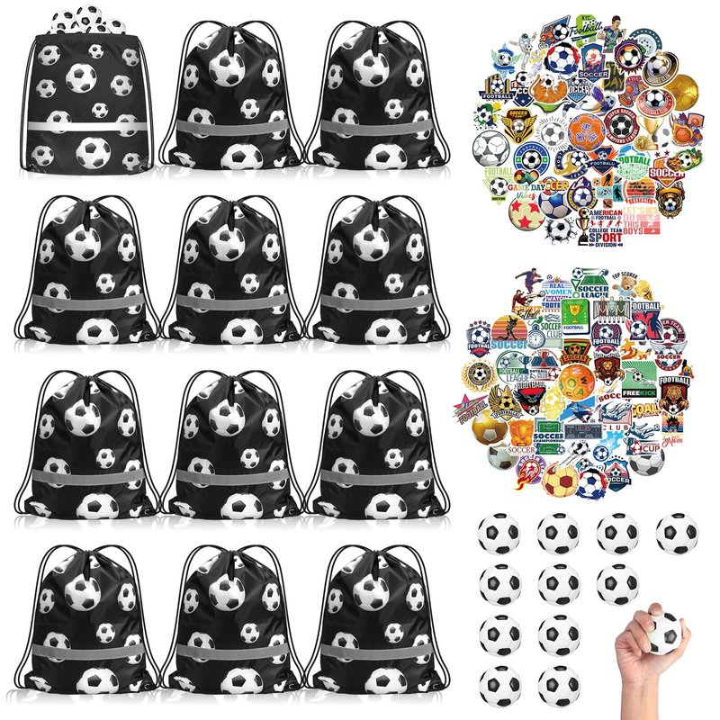 Silkfly 124 Pcs Soccer Party Favors Set 12 Soccer Party Drawstring Bags Treat Bags 12 Mini Squeezable Football Balls 100 Soccer Stickers Gift for Soccer Football Sport Party Supplies