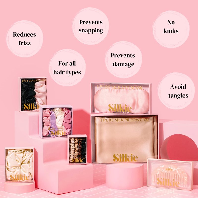 - 100% MULBERRY SILK - Formulated with the highest quality silk, Silkie scrunchies glide through the hair, protecting it from split ends and causing no damage. Tie your hair in a bun at night with a Silkie scrunchie to prevent friction, tangles and damage overnight. The smooth surface of Silkie scrunchies prevent hair being caught and snagged, unlike cheaper elastic hair ties