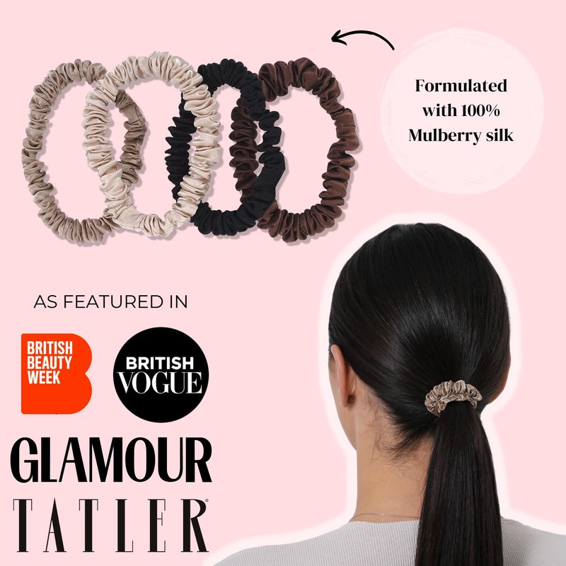 - MULTI PURPOSE - Stylish and functional, each set of Silkie skinny scrunchies comes with 4 different complimentary tones - take your pick from our Chocolate or Nudes collections. Neutral, practical colours mean they can be worn in the daytime, evening wear for a chic look, or even during exercise and at the gym. Silkie scrunchies are suitable for all hair types!