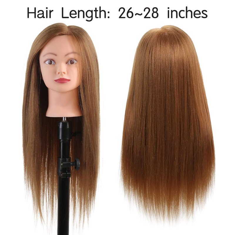 SILKY 26"-28" Long Hair Mannequin Head with 60% Real Hair, Hairdresser Practice Training Head Cosmetology Manikin Doll Head with 9 Tools and Clamp - #27 Golden, Makeup On
