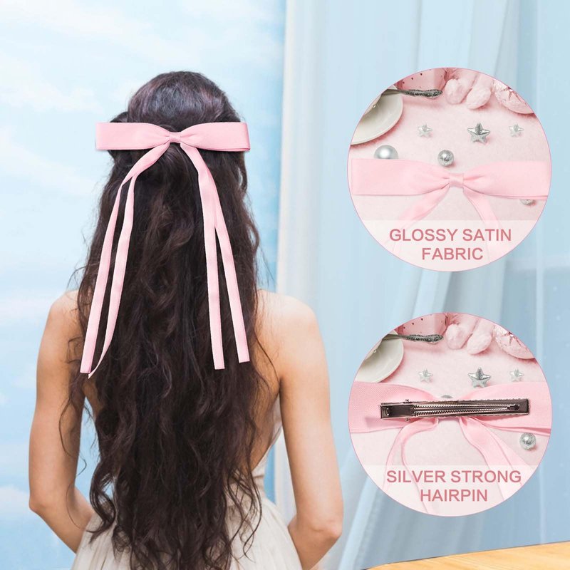 - Exquisite design: The cute bows is made of satin fabric and metal clip, this bow hair clip will sparkle in the sun, feel soft and smooth, and not easy to wrinkle, the long bow tail makes you look more elegant and charming, and the metal clip can hold the hair firmly without letting the hair slip, and the hair ribbons is not easily damaged.