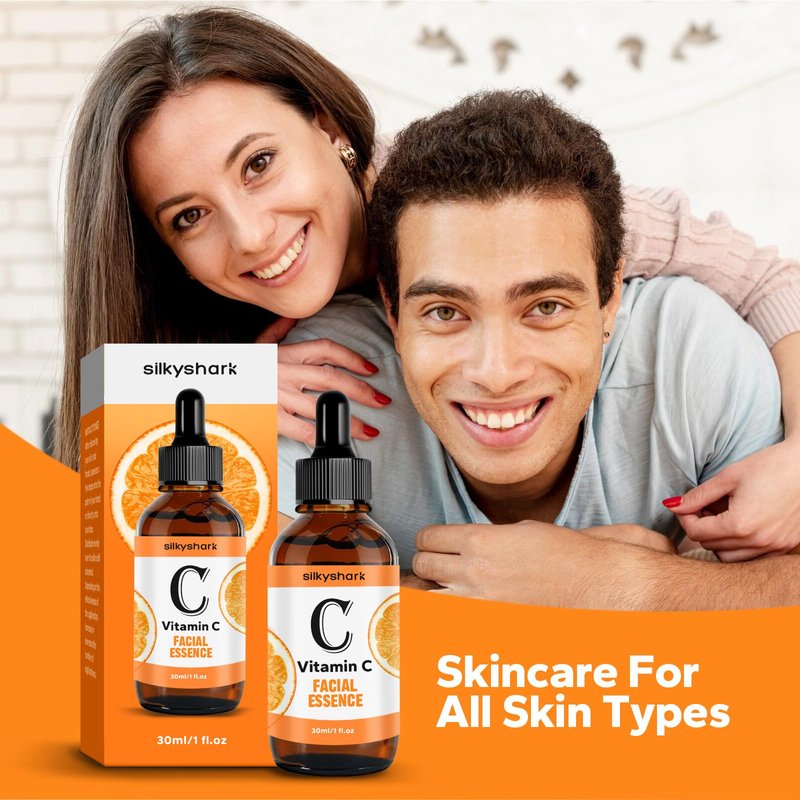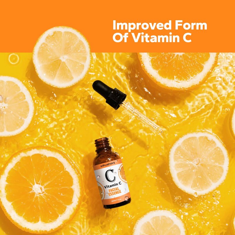 SilkyShark Vitamin C Facial Essence (1 Fl, Oz), Antiaging Serum & Eye Serum with Vitamin C, Hyaluronic Acid, Vitamin E Serum, Radiance Serum, Boosts Skin Collagen