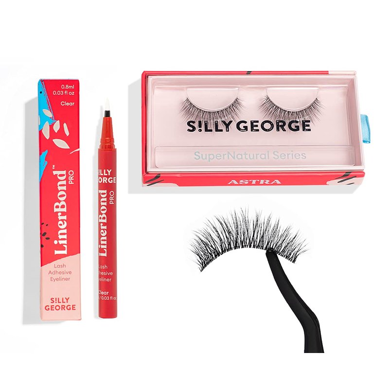 Silly George SuperNatural Series Starter Kit - Pretty Lashes with Adhesive Eyeliner | Clear Band gives Lashes Natural Look | Extra Strong Hold for False Eyelashes (Astra, LinerBond™ Clear)