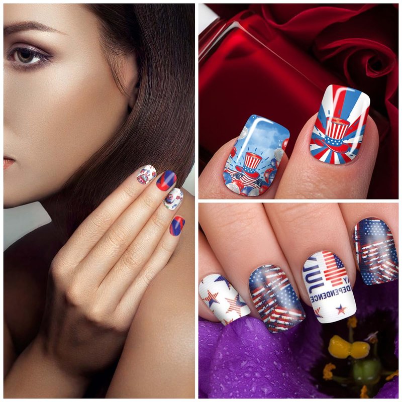 - Easy To Use - our 4th of July nail wraps possess good adhesion, easy to be applied on your nails, very convenient, just tear off the nail polish strips and stick on your nail, also easy to remove by peeling it off, friendly to beginners, you can apply a layer of nail polish to seal if you want to keep a long time.