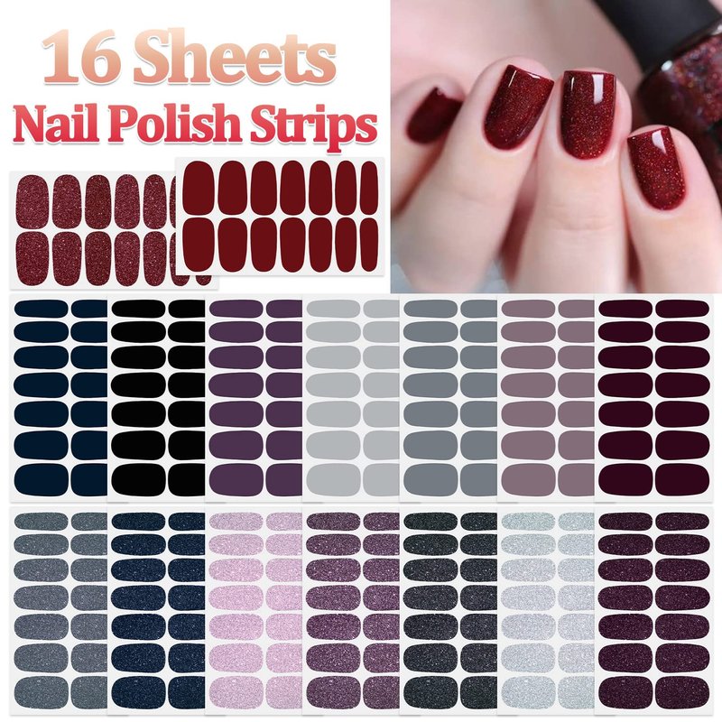 - Package Content - 16 sheets gel nail strips + 1pc nail file. each sheet of measures approx. 10 x 5.5 cm/ 4 x 2.2 inches, total 224 pieces and 7 different sizes, a variety of styles and color, let you always keep gorgeous nails.