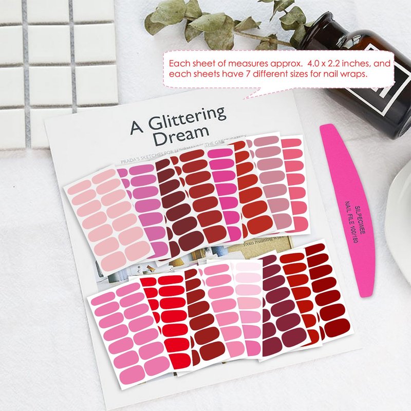 SILPECWEE 16 Sheets Pink Red Nail Polish Stickers Full Nail Wraps for Women Stick on Nail Polish Strips Gel Nail Strips Solid Color Self Adhesive Fingernail Manicure Design with Nail File