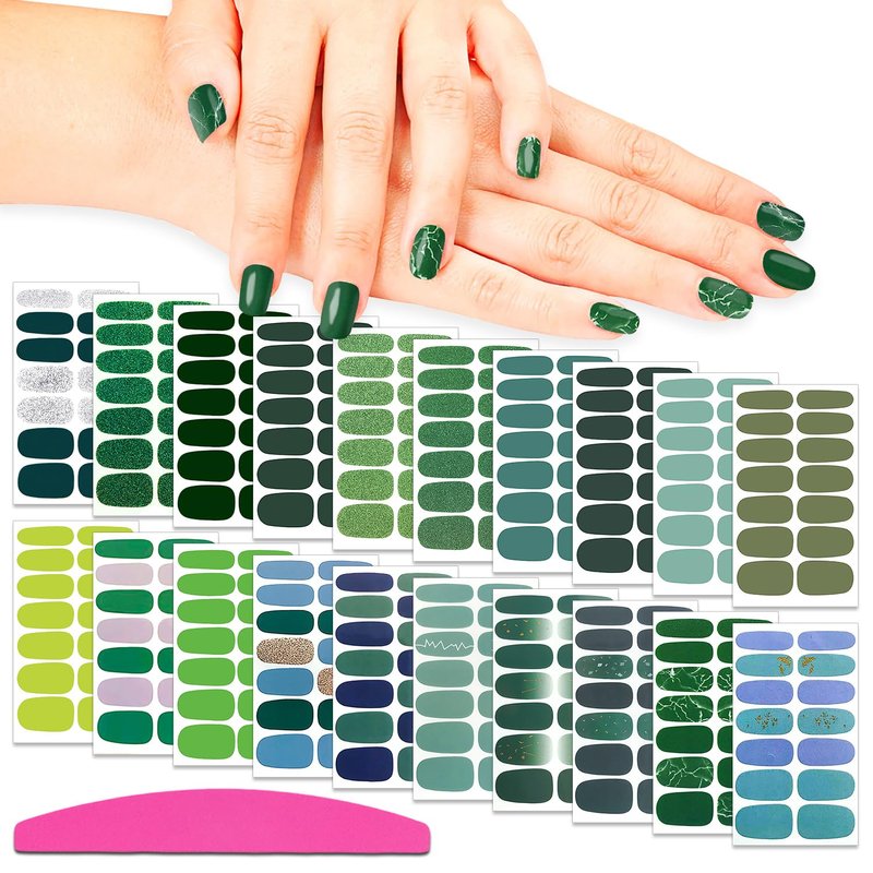 SILPECWEE 20 Sheets Green Nail Polish Strips Spring Nail Wraps for Women Self Adhesive Nail Stickers Nail Strips Real Nail Polish Stick on Nails with 1pc Nail File