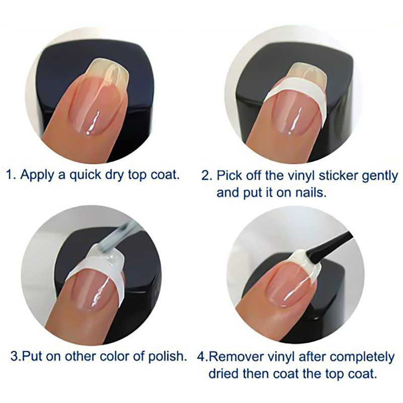 - Easy To Use - use tweezers to carefully lift guides from backing sheet, and place it along natural nail tip, leaving the gap where you need to apply the nail polish, after you painted the nail polish and dry, carefully peel off the nail guide stickers from each finger, then finished.