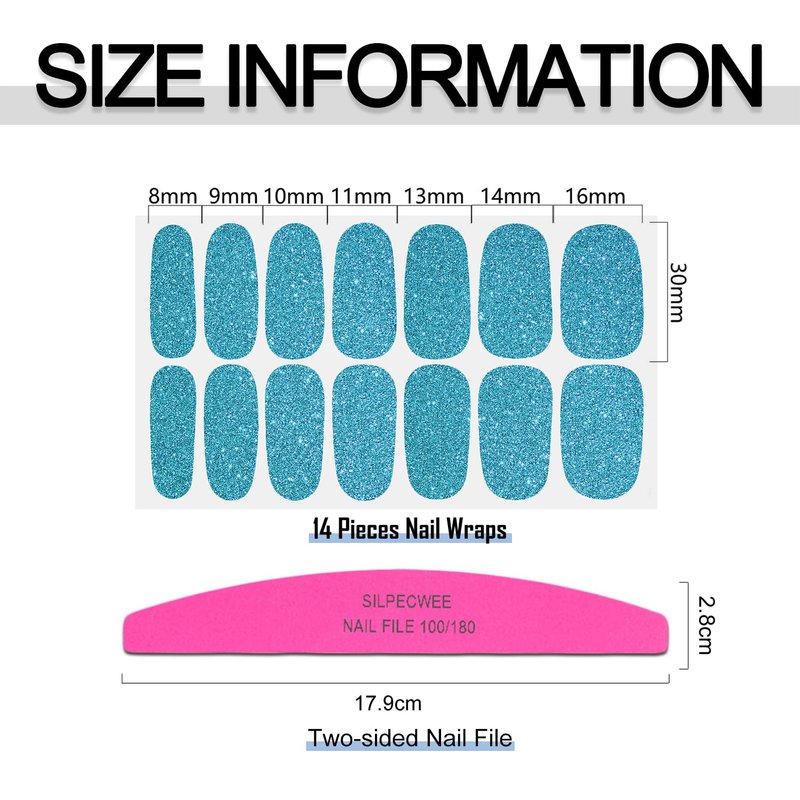 - Stylish Blue Nails Design - as the most fashionable nail design, blue is one of the favorite nail styles for every woman, SILPECWEE nail strips set have glitter blue style and solid blue style, make it easy for you to pair up charming nail art design.