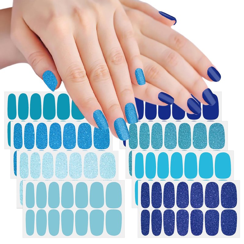 - Package Content - 8 sheets blue nail strips + 1pc nail file. each sheet of measures approx. 10 x 5.5 cm/ 4 x 2.2 inches, total 112 pieces and 7 different sizes, a variety of styles and color, let you always keep gorgeous nails.