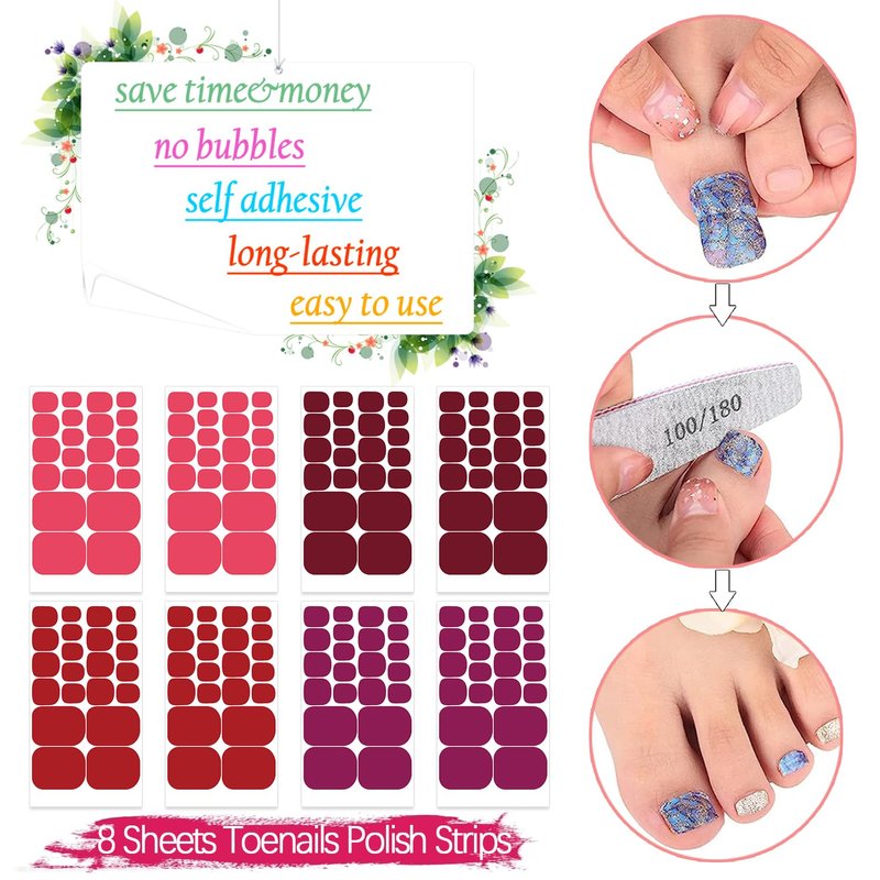 - Easy To Use - toenail strips polish are self-adhesive, you can stick on your nail surface directly, friendly to beginners, you can apply a layer of nail polish to seal if you want to keep a long time.