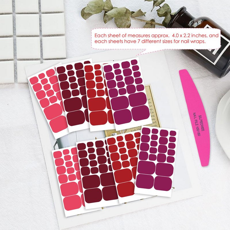 - Stylish Dark Red Style - SILPECWEE toenail strips polish have fashionable and changeable colors, depth matching, color gradient, special effect of color fusion, amazing nail art effect, it make you at any time and on any occasion, you are definitely the most charming one.