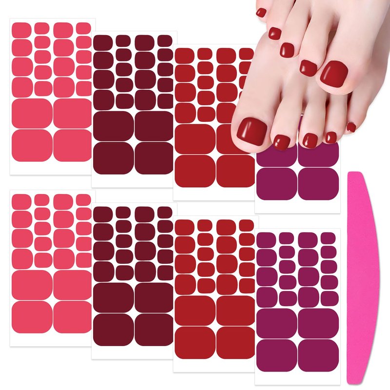 SILPECWEE 8 Sheets Dark Red Nail Wraps for Toes Toe Nail Stickers Decals Toenail Polish Strips Gel Nail Strips Self Adhesive Toenails Polish Stickers Manicure Design with Nail File