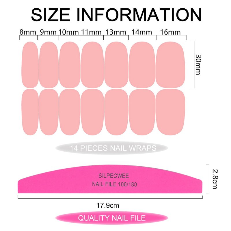 - Package Content - 8 sheets nail polish strip for women + 1pc nail file. each sheet of measures approx. 10 x 5.5 cm/ 4 x 2.2 inches, total 112 pieces and 7 different sizes, convenient to carry and store without taking up much space.