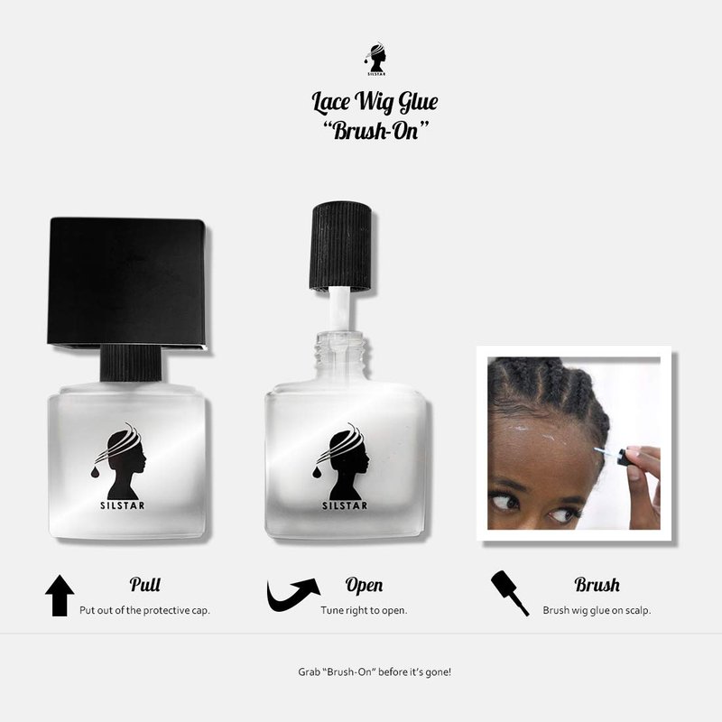 - SILSTAR PROFESSIONAL LACE WIG BRUSH ON GLUE is intended for touch-ups between replacements and offers easy application, It is water resistant, no white residue, and a absolute hold!