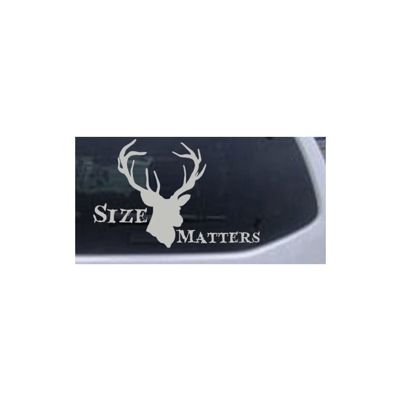 Silver 6in X 3.9in - Size Matters Big Buck Decal Hunting and Fishing Car Window Wall Laptop Decal Sticker