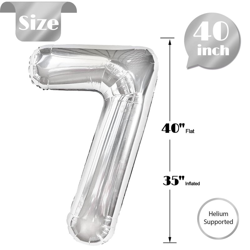 - 【Helium or Natural Air Both Work Well for this Balloon】This 7 balloon is the ultimate party accessory for 7 17 27 37 70 71 72 73 74 75 76 77 78 79 years old birthday decorations for girl and boy! You can inflate the 7 balloon number with helium for a floating effect or blow it up with natural air to hang it up as a decoration. Either way, this sturdy silver number balloon won't disappoint. It's perfect for long-lasting celebrations that will leave a lasting impression on your guests.