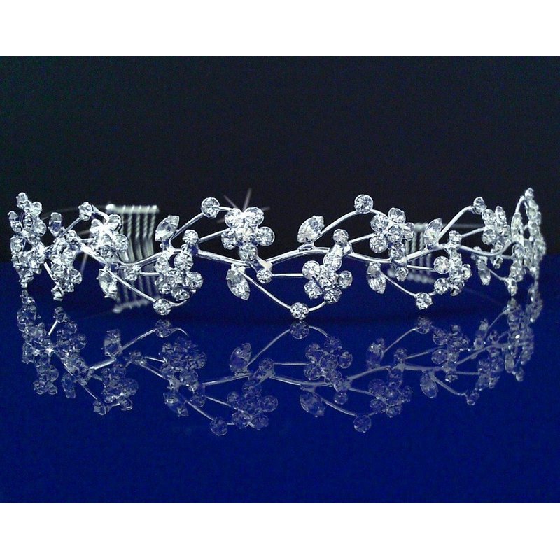 Silver Bridal Tiara Prom Crystal Rhinestone Flower Wedding Party Accessory T2