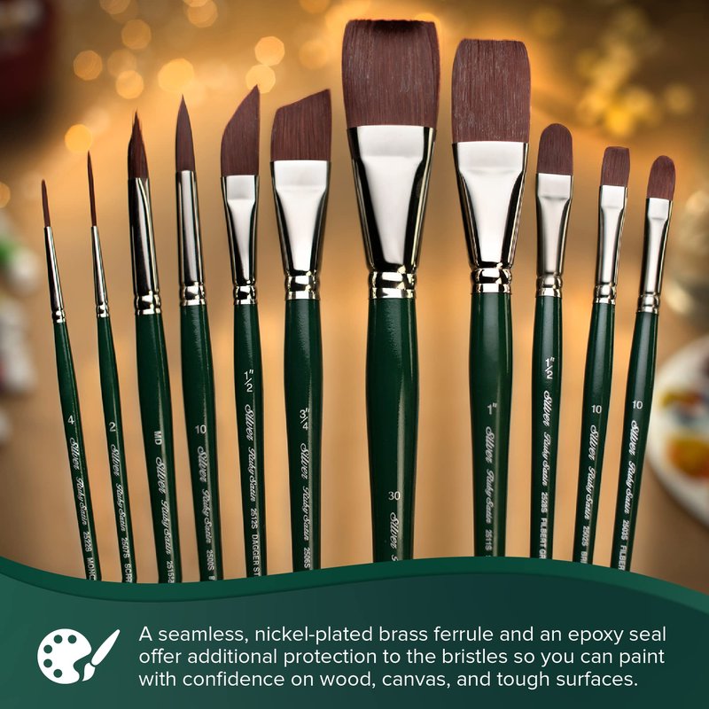 - MATERIALS: Our Ruby Satin professional artist brushes are expertly crafted with synthetic mongoose filament and are fit for rough painting surfaces. Each brush has a wooden handle that is finished with a sophisticated, nickel-plated brass ferrule.
