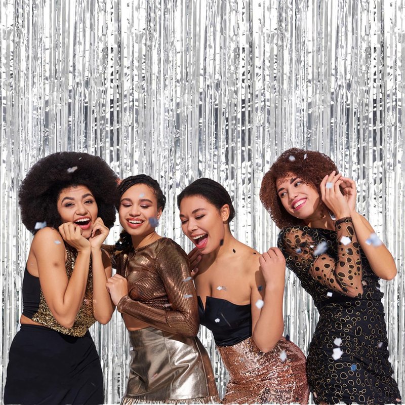 - Foil Fringe Curtains.Fantastic decoration: the beautiful tinsel backdrops are good for any theme party decorations, Birthday,Wedding,Baby showers,Bridal show,Graduations,Halloween,Christmas,New Year and more stage background and kinds of festival photography curtains decorations