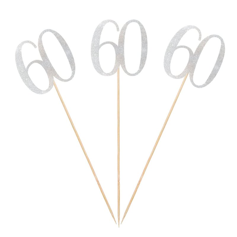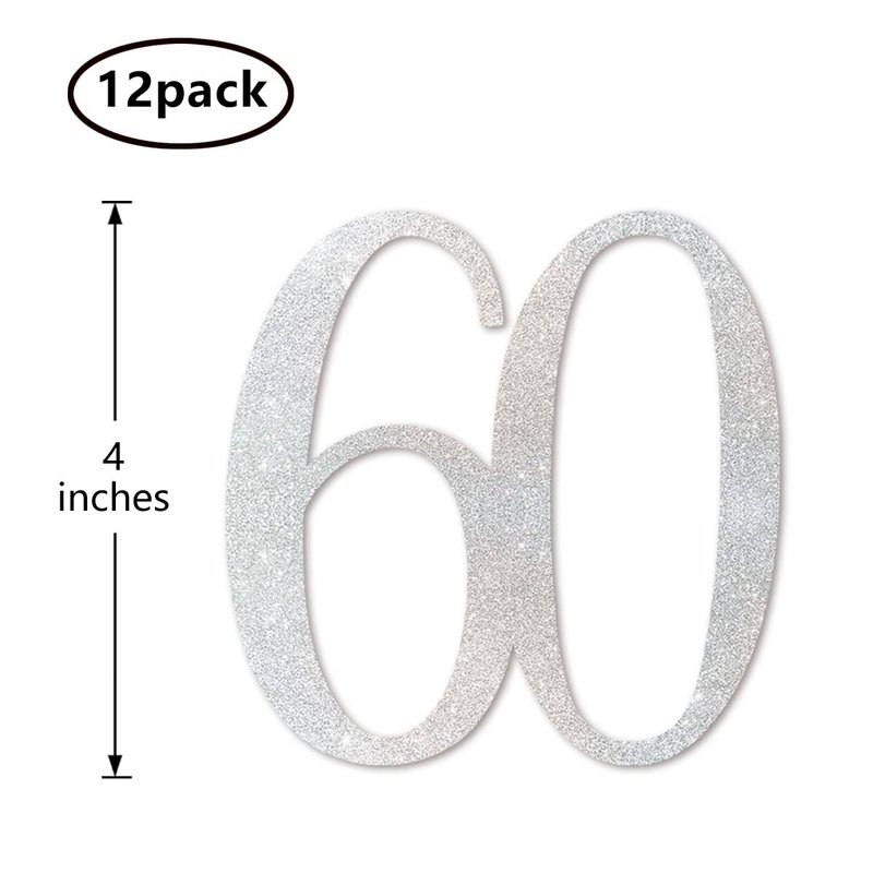 Silver Glitter 60th Birthday Centerpiece Sticks, 12-Pack Number 60 Table Topper Anniversary Party Decorations