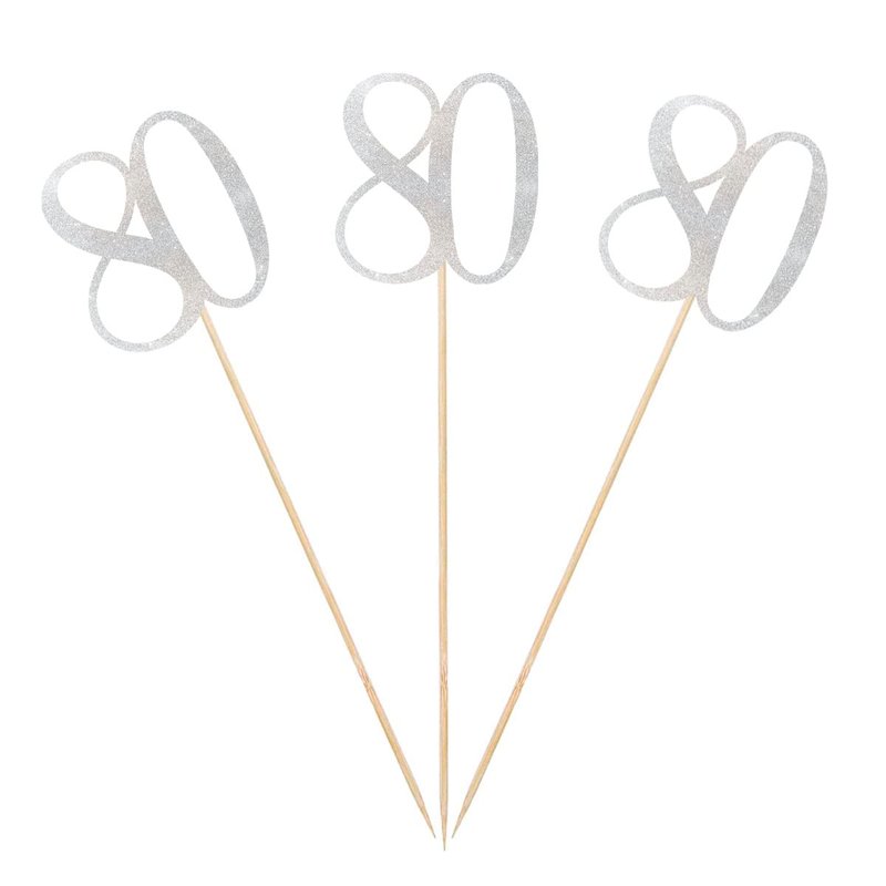Silver Glitter 80th Birthday Centerpiece Sticks, 12-Pack Number 80 Table Topper Anniversary Party Decorations