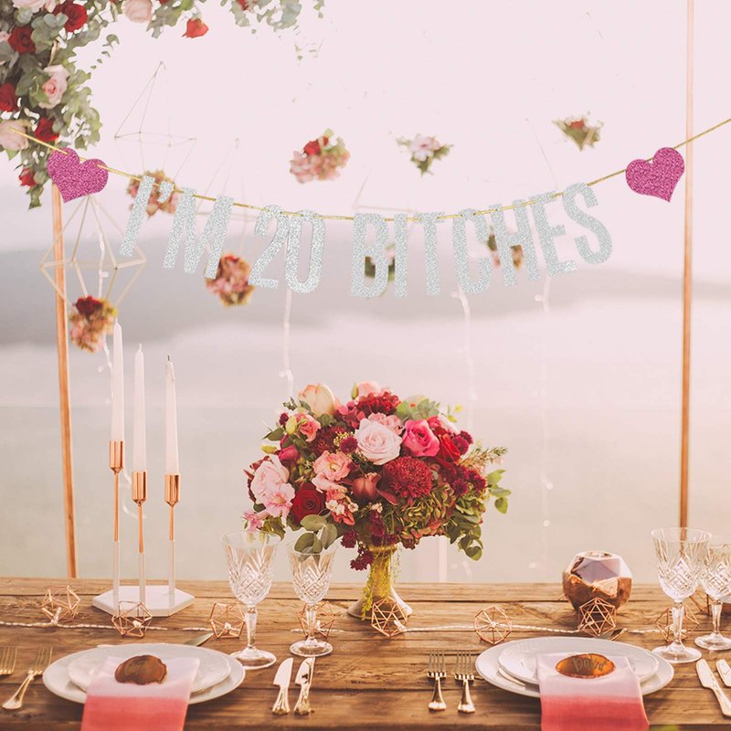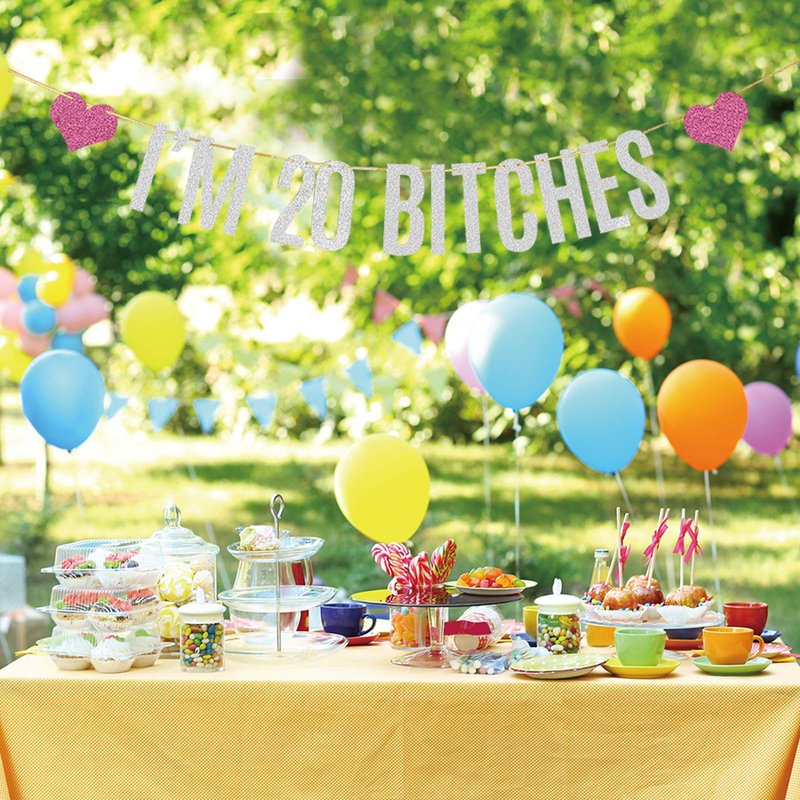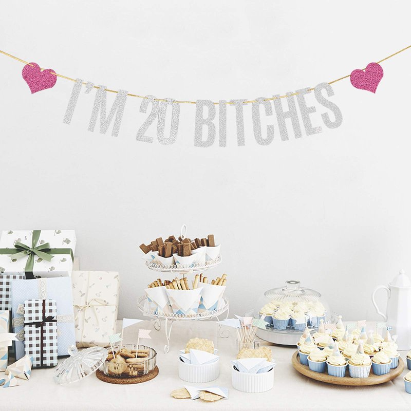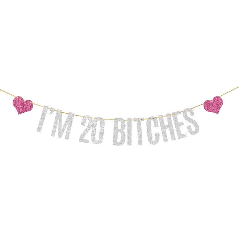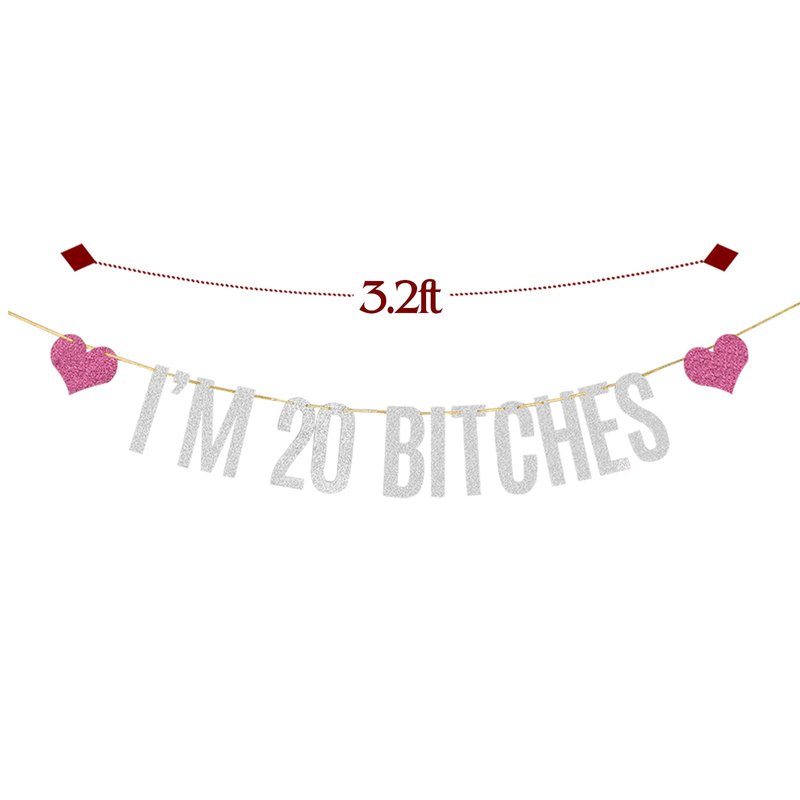 Silver Glitter I'm 20 Bitches Banner Happy 20th Birthday Banner Cheers to 20 Years Funny Birthday Theme Party Decorations
