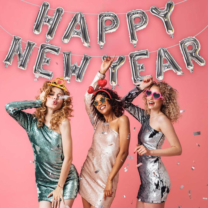 - Package Include: 16inch 'HAPPY NEW YEAR' foil letter balloons. Each set of new year balloons comes with a straw to help you inflate each letter and a long ribbon.