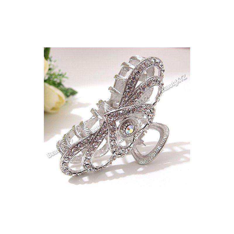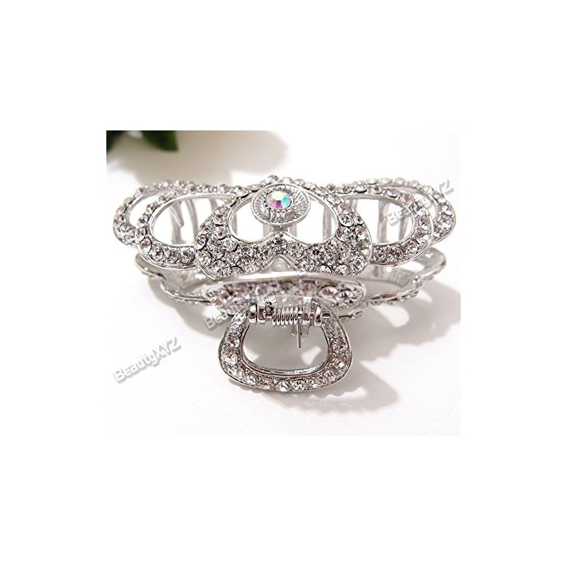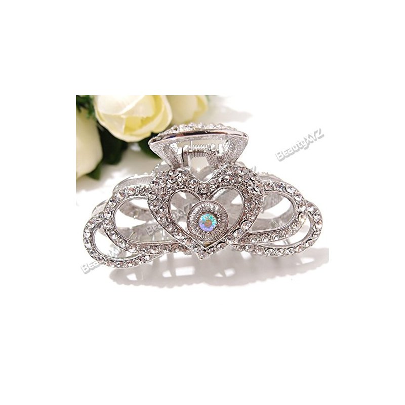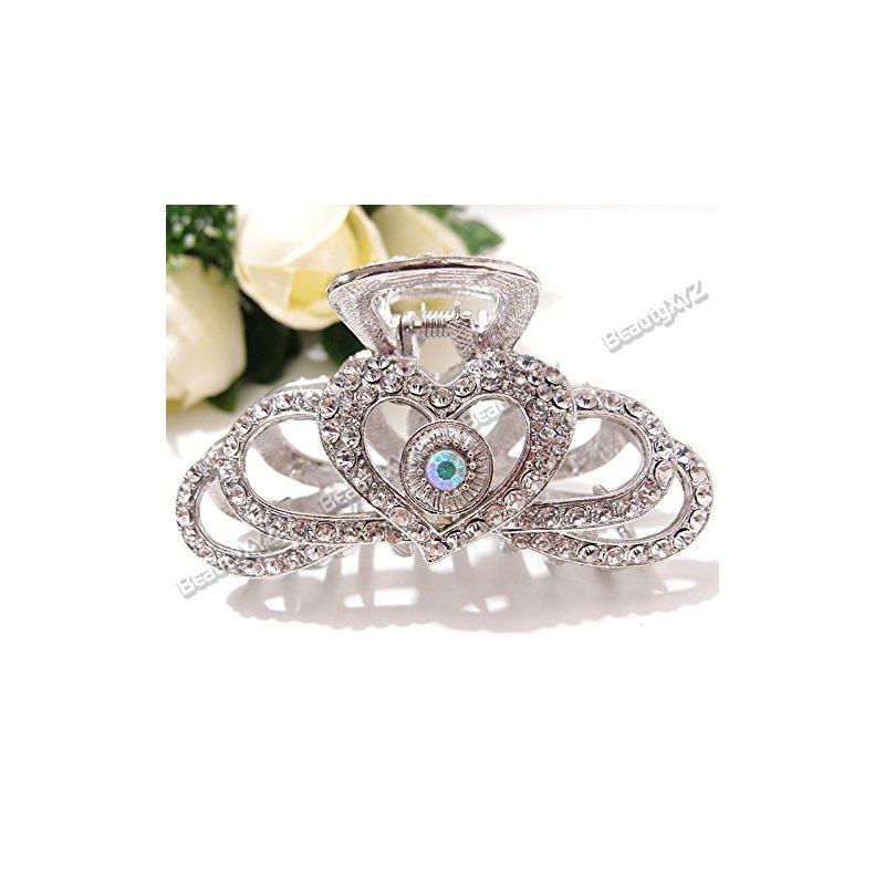 Silver Heart Rhinestones high Quality Metal Hair Claws Clips Pins #222