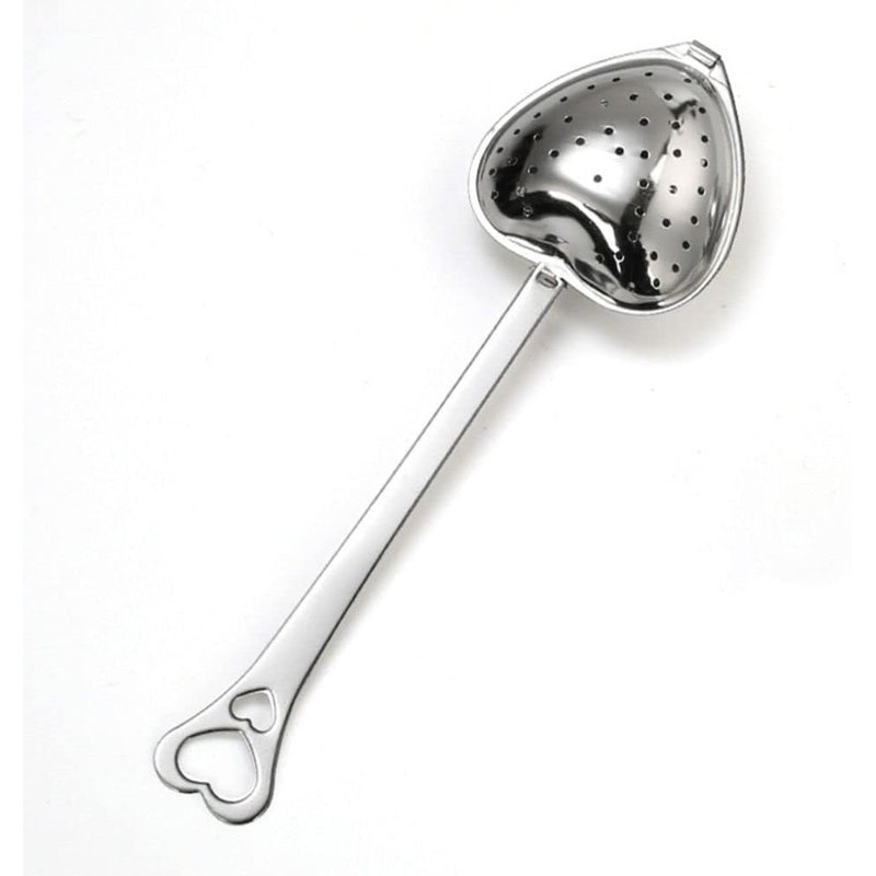 Elevate your tea-drinking experience with this charming heart-shaped tea infuser that combines style with functionality. The silver-toned strainer features a convenient handle for easy steeping and removal, making it perfect for loose leaf tea enthusiasts. This versatile tea filter fits most mugs and cups, allowing you to enjoy your favorite loose tea without the mess. The durable mesh design effectively prevents tea leaves from escaping while allowing optimal water flow for a perfect brew. Whether you're a daily tea drinker or occasional sipper, this practical and decorative infuser adds a delightful touch to your tea ritual. The spoon-like handle provides a secure grip and keeps your fingers away from hot water. Simple to use and clean, this tea strainer is an essential addition to any kitchen or tea lover's collection.