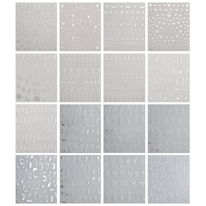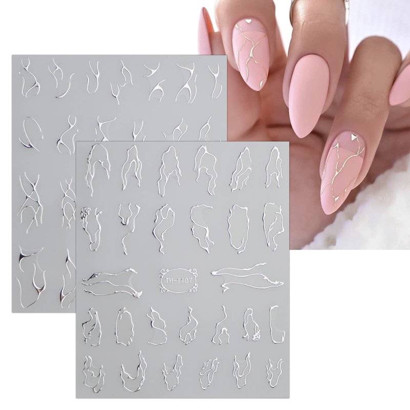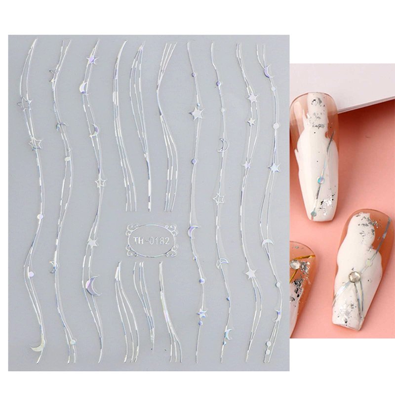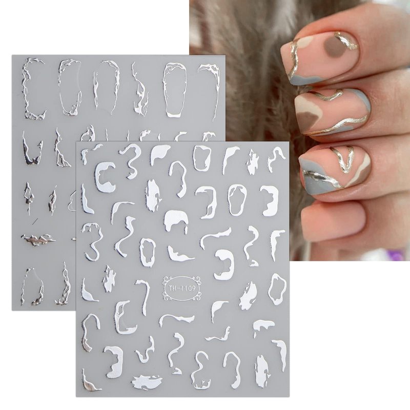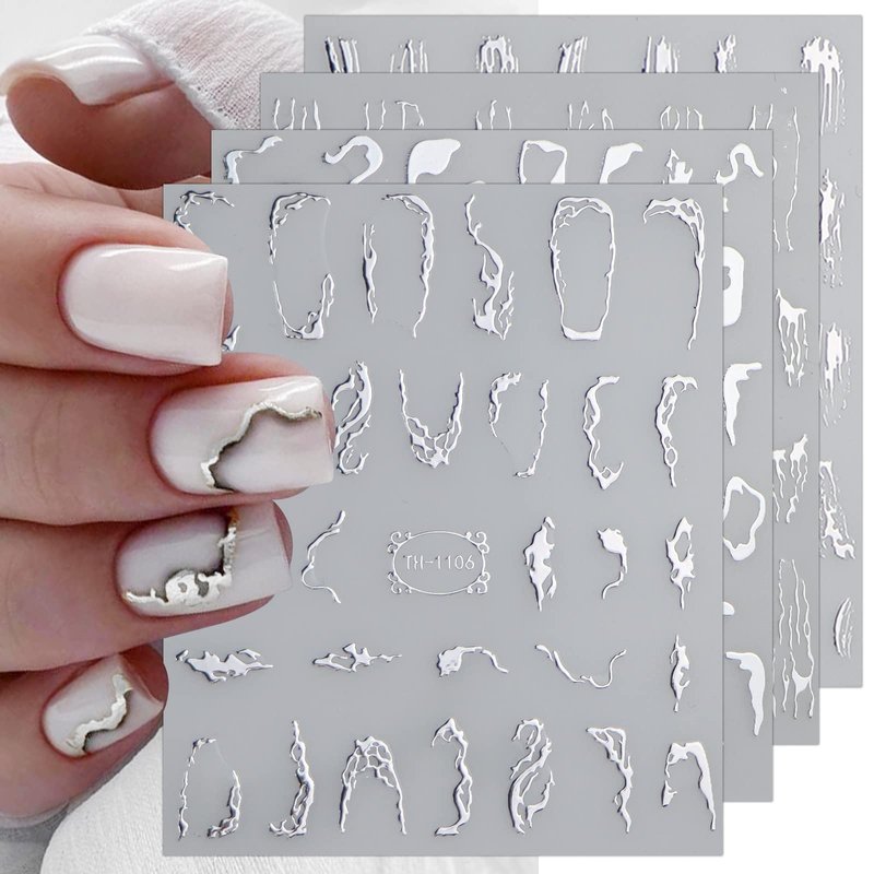 Silver Marble Line Nail Stickers, 16 Sheets Self-Adhesive Nail Decal Nail Art Decoration Design Supplies