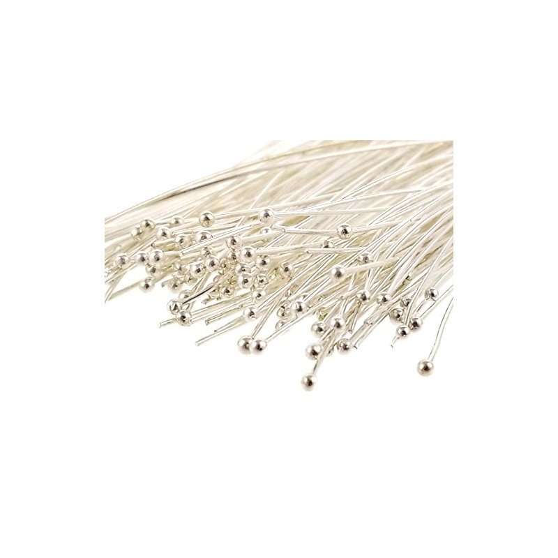 Silver Plated Quality Brass Ball Head Pins for Jewelry Making, Earrings - Hypoallergenic (50mm x 22 Gauge) 2 Inch