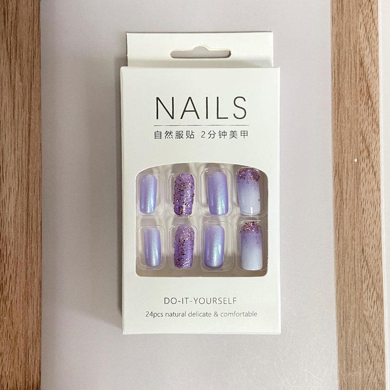 - 【Easy to Use】: Choose the suitable silver purple fake nails, polish the nail bed, paste the jelly glue we give you, press the fashion nail art in 30 seconds, and create the nail art that girls like,If the size is not suitable, it can be polished to the size of the nail cap with a friction tool.