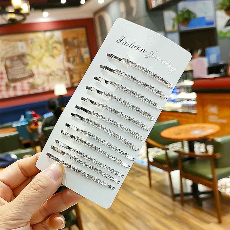 - Package: You will get 12pcs silver bobby pins, with one row shiny white diamonds on the surface.