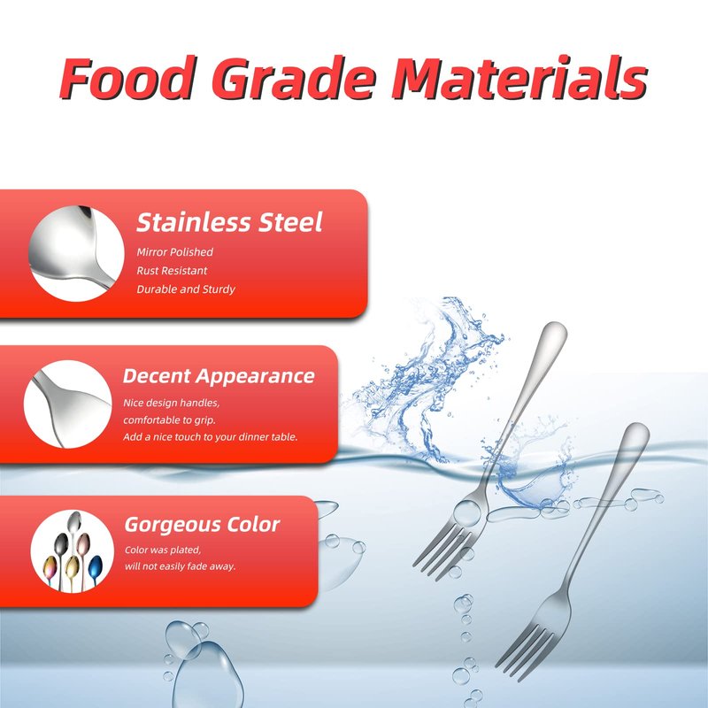 - ✅Modern Silverware with Metal Holders -- The heavy duty forks set adds a nice decoration to your home & kitchen. You will get compliments when your people sees them. A nice cutlery enable you enjoy your meals in ease. Make a worthy investment which not only cost effective, but a useful tableware set you will appreciate. It is DISHWASHER SAFE.