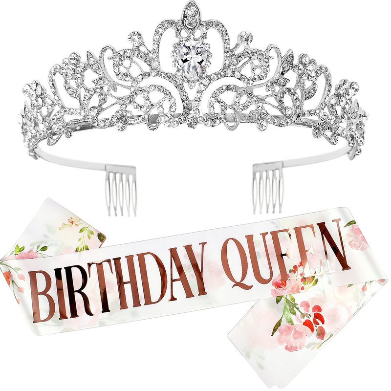 Silver Tiara for Women Birthday, Crowns for Women, Happy Birthday Queen Tiara for Women, Birthday Queen Crown for Girls, Tiaras and Crowns for Women with Birthday Girl Sash, Crowns with Rhinestone