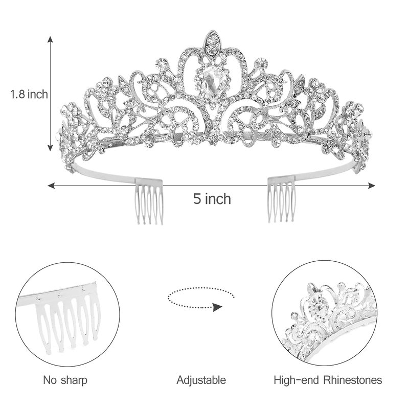 - ❤️Material: durable cemented carbide and rhinestones. The alloy has a diamond appearance and a hard texture, which is both practical and beautiful. The weight of the product is less than 100 grams, and there is no sense of weight on the head after wearing the crown.
