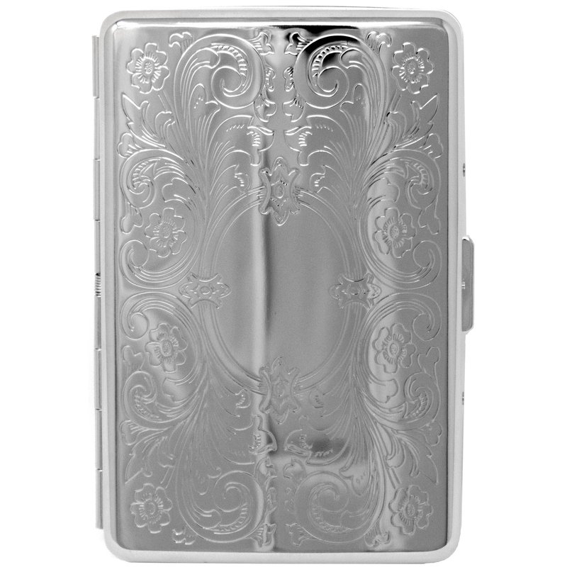 Silver Vintage Victorian Scroll Compact (16 100s) Etched Metal-Plated Cigarette Case & Stash Box