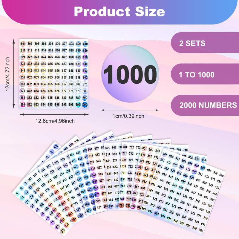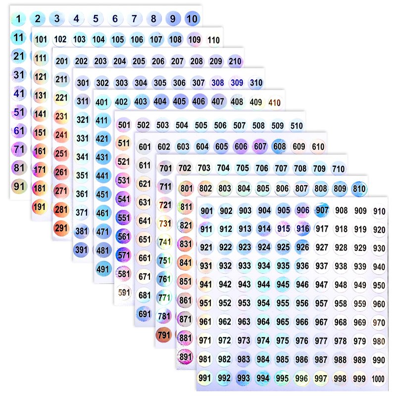 - 【Number sticker set】You will receive 20 sheets of reflective round reflective laser number stickers, a total of 2000 pieces round number stickers, each sticker is 10mm in diameter, arranged consecutively from 1 to 1000, help you number something and organize life.