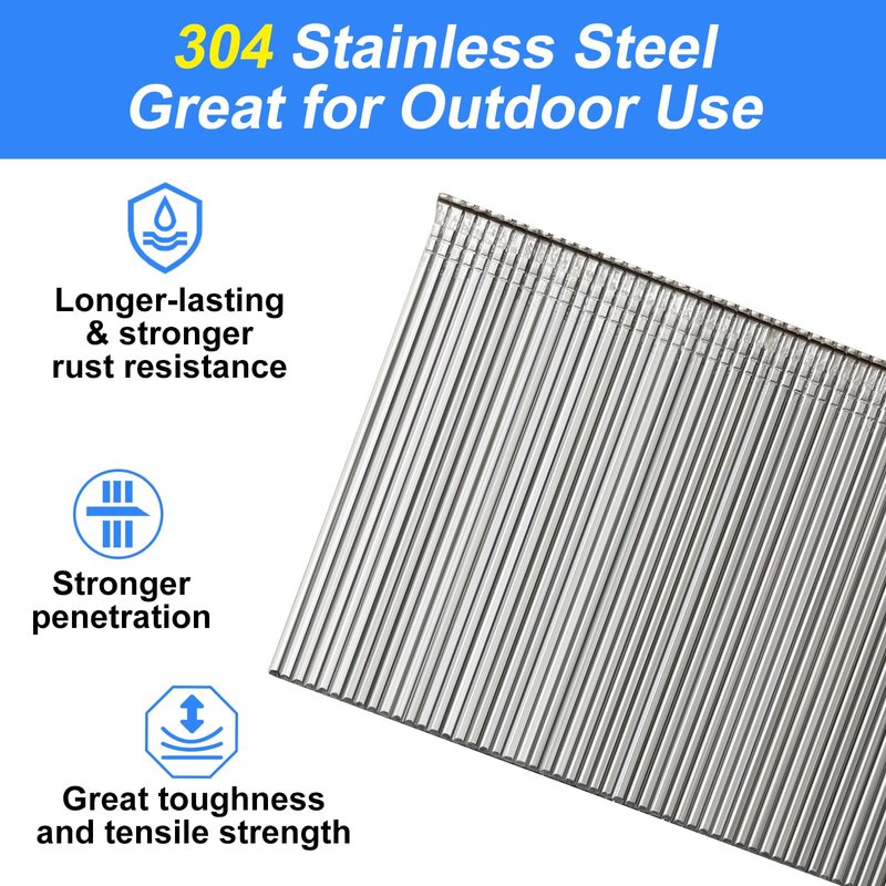 - 【Stainless steel brad nails】304 stainless steel makes the brad nails keep the stronger rust & corrosion resistance than galvanized brad nails, it is suitable for outdoor or indoor use.