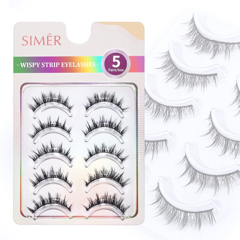 SIMER 5 Pairs False Eyelashes Manga Lashes Natural Look C Curl Wispy Mink Lashes 12mm Strip False Eyelashes for Eyelash Extension