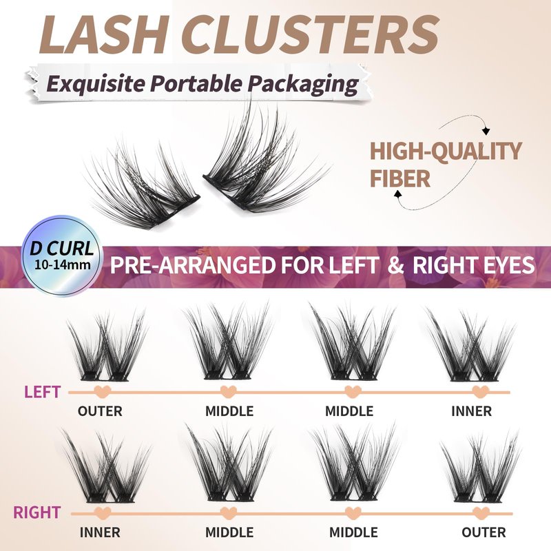 - 【Pre-arranged Cluster Lashes】A tray provides pre-arranged eyelashes for the left and right eyes, specially designed with different lengths of 10-14mm according to the shape of the eyes, effectively enlarges the eyes.