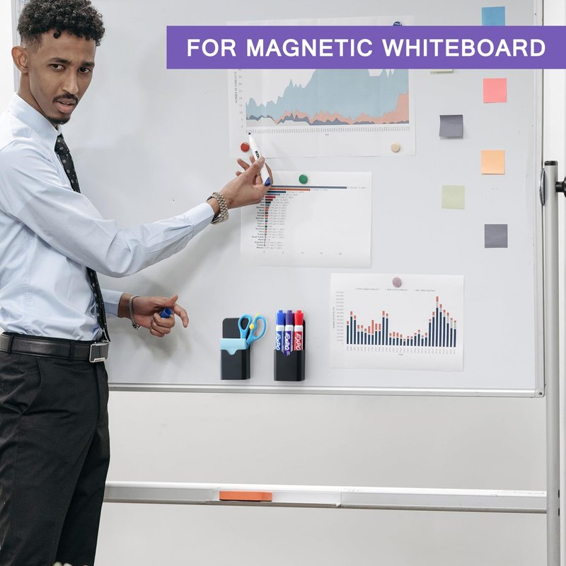 - 【Strong Magnetic】With the powerful magnet behind the dry erase marker holder, it attaches to metal and magnetic surfaces easily without sliding and falling, Note, however, that it does not work on glass whiteboards.