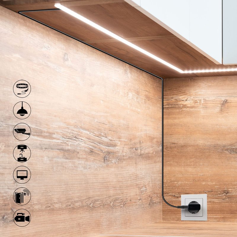 Description: Length: 10 Feet / 3 Meters Material: PVC Plastic Color: Black. Net Weight: 2oz/57g Used for LED RGB/Single Color Strip Light, CCTV Rated current: 3A Rated power: 36w Transmission voltage range: 1V – 24V 2.1mm inner dia. x 5.5mm outer dia. barrel plug, Male to Female Temperature range: -58 to 149 Fahrenheit Wear resistance, Aging resistance, Corrosion resistance, Oxidation resistance, Anti-exposure, High safety factor Polarity: Inner-Positive Pole, External-Negative Pole Package Content: 1x 10 Ft LED Extension Power Cord