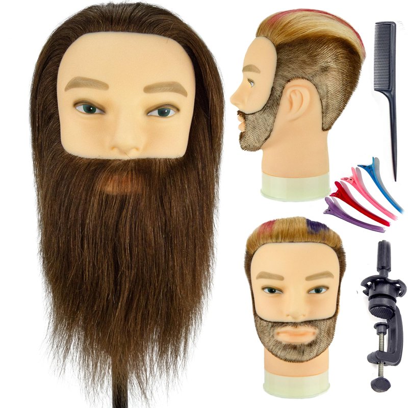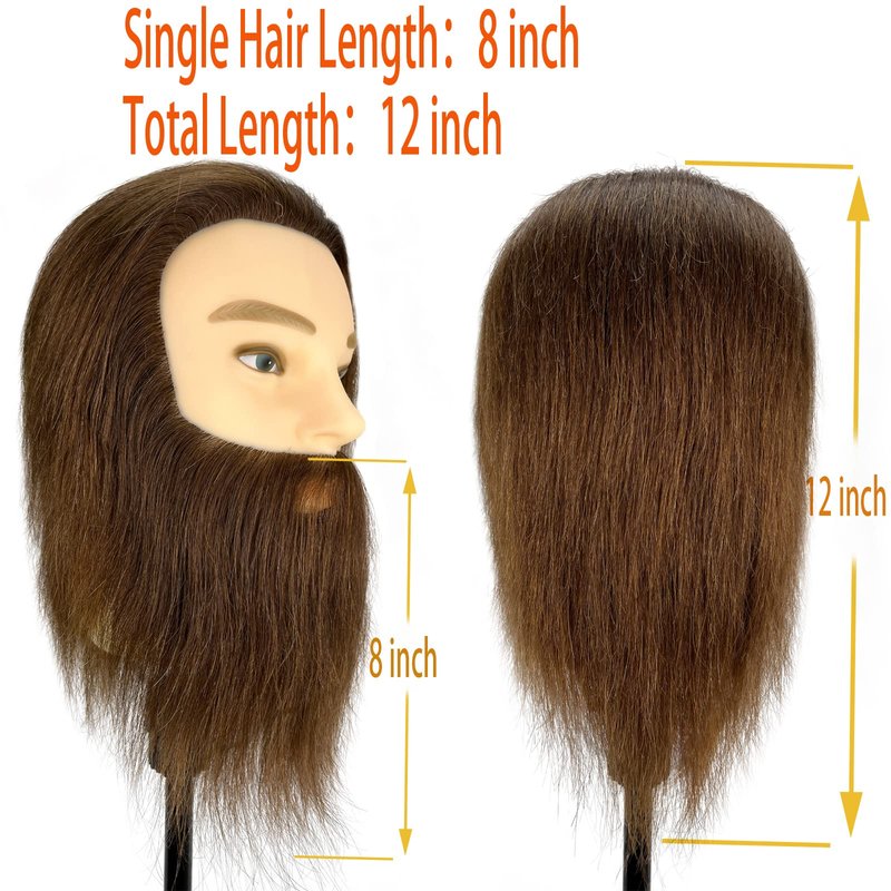 The Male Mannequin Head with Beard,The workmanship is of good quality and can be blown, cut, dyed,Training Head,100% Real Human Hair for Hairdressers Manikin Head for Hair Styling and Practice,Hair Stylists,Cosmetologist,Barber Shop,Cosmetology School.Reduce the common problems of hair loss and easy tangling in mannequin heads.
