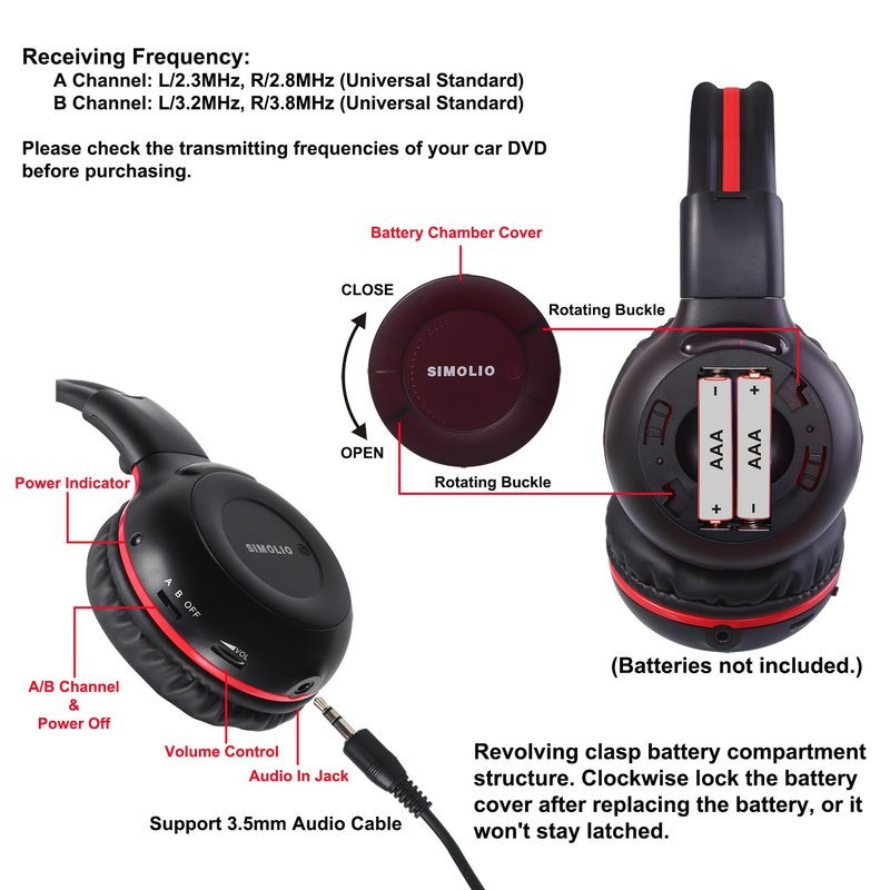 2.The Simolio IR wireless headphones are the perfect traveling companion for the family on the go! Compatible with all universal car DVD Players.They can also be used outside the car with the included Aux cable for smart phones, Tablets, MP3 etc, or equipped with an IR transmitter for watching TV at home.