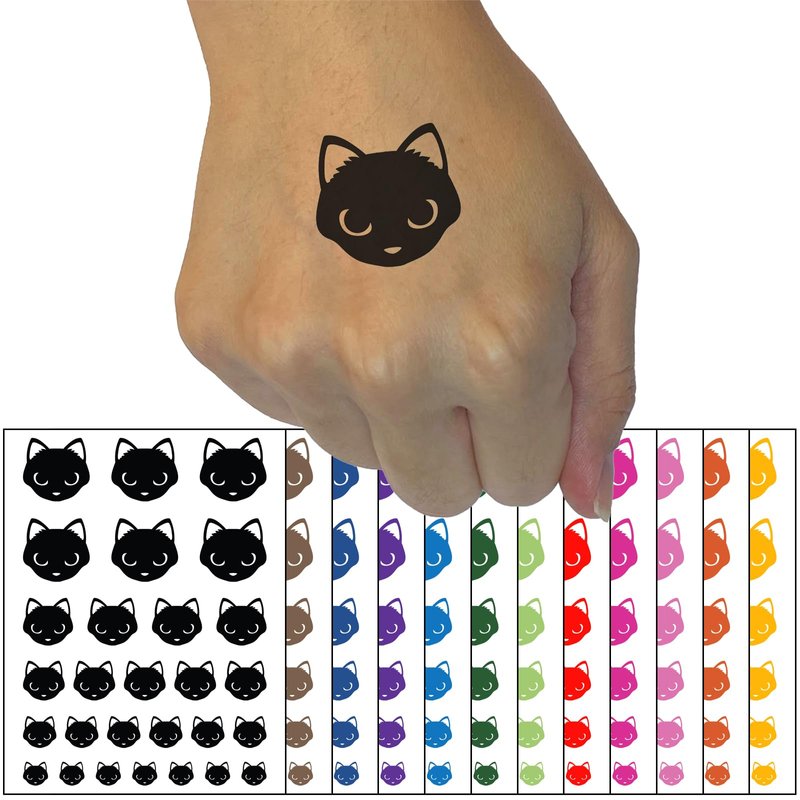 Simple Cat Head Icon Temporary Tattoo Water Resistant Fake Body Art Set Collection - White (One Sheet)